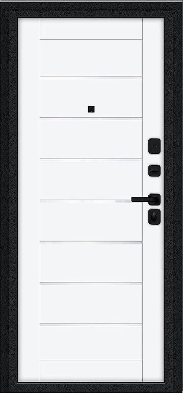 Надежная входная Дверь Браво Техно/SBlack Букле черное/White Silk премиум класса по цене 34 707 руб. Большая толщина стали защитит от проникновения в ваш дом, квартиру или коттедж. Используется очень качественная фурнитура: замки, цилиндры, ручки, защелки. Покрытие и отделка двери изготовлено под внимательным контролем производителя. Дверь имеет долгий срок службы и гарантию.